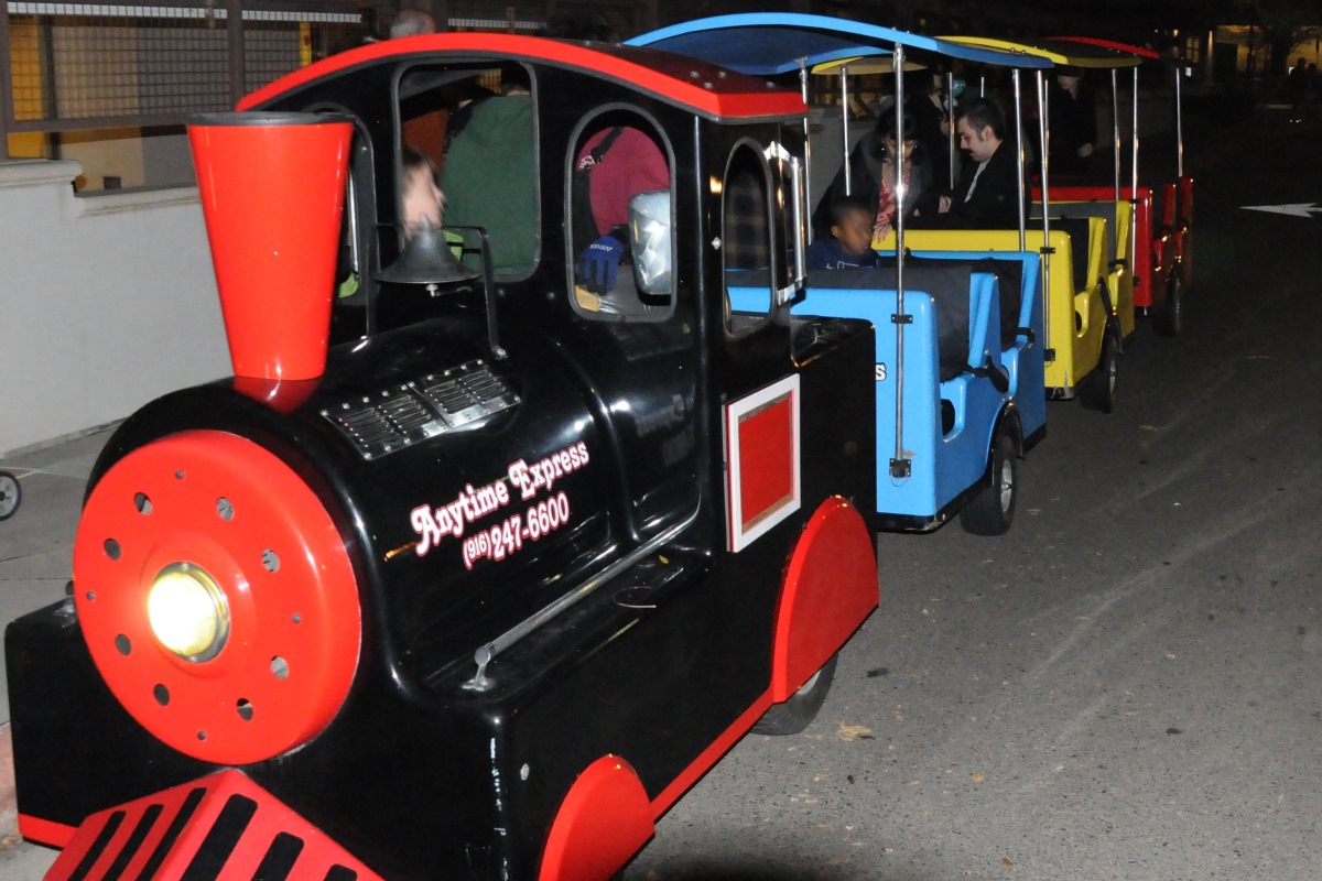 The event wound down by 9 p.m., as the popular “choo-choo” train ride outside prepared for its last run around the Community Center, and officers from the Citrus Heights Police Department hauled off several bags full of goods received from on-site donation bins to benefit the Holiday Referral Program.