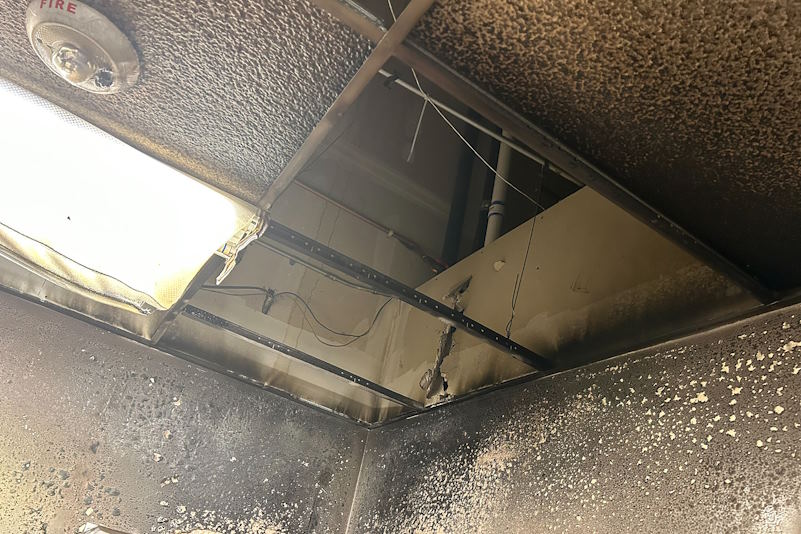Photo from Metro Fire showing the office ceiling near the origin of a fire at the Safeway store at 7301 Greenback Ln., on Oct. 2, 2023.