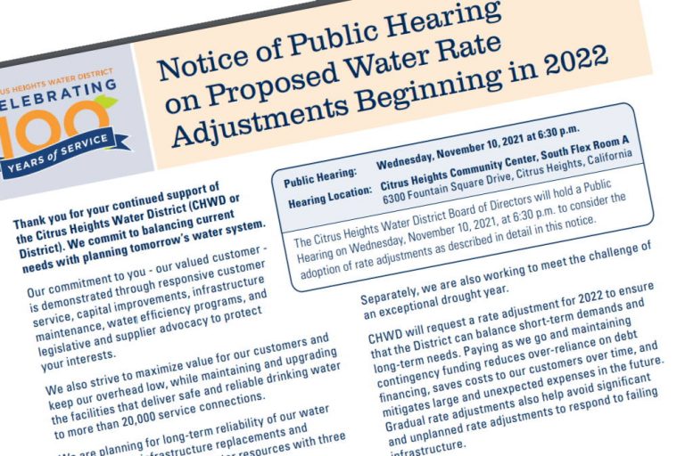Citrus Heights Water District to hold public hearing on fee increases, drought rates