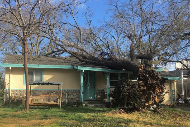 Fallen tree. A large tree uprooted and fell on a home on the 7900 block of Twin Oaks Avenue following Thursday’s rain. (see photo)