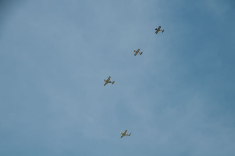 The aircraft appear to be part of Bonanzas to Oshkosh (B2OSH), an organization aimed at helping pilots attain their formation rating in an effort to arrive at Air Venture, the country’s largest airshow, together as a group.