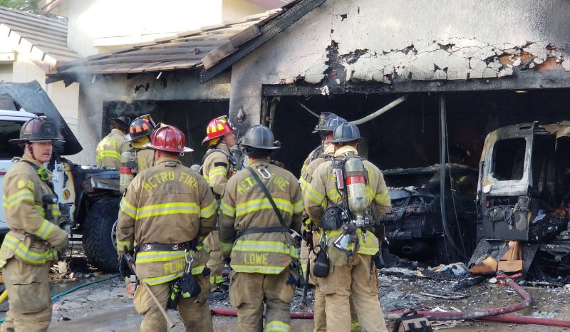 Metro Fire Battalion Chief Jason Vestal said the fire was largely contained to the garage of a single-story home on Acorn Creek Court, located off Old Auburn Road near Wachtel Way. He said no injuries were reported, but two vehicles parked in the garage and another on the driveway were described as likely being a “total loss.”