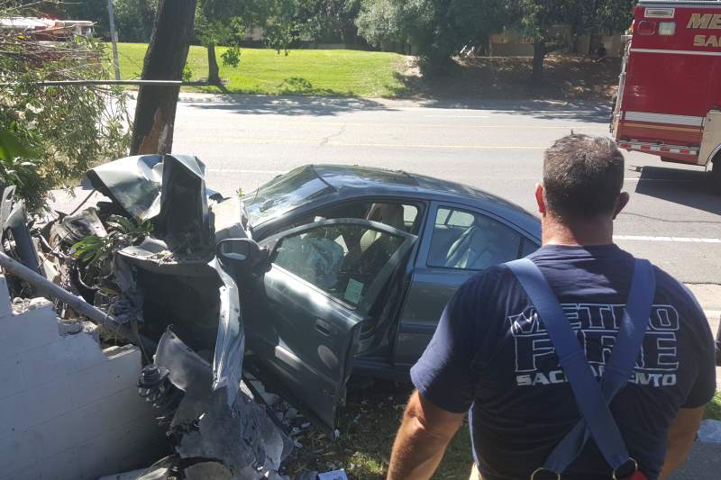 Officer Anthony Boehle said police responded to the accident scene near Antelope Road and Sunrise Boulevard shortly before 10 a.m. Monday to find a teal Volvo smashed into a wall while four other vehicles involved were located nearby on the side of the road. Based on witness statements and an initial investigation, he said the Volvo is believed to have been driving in “an unsafe, reckless manner” while fleeing the scene of an accident about a half a mile away at Antelope Road and Mariposa Avenue.