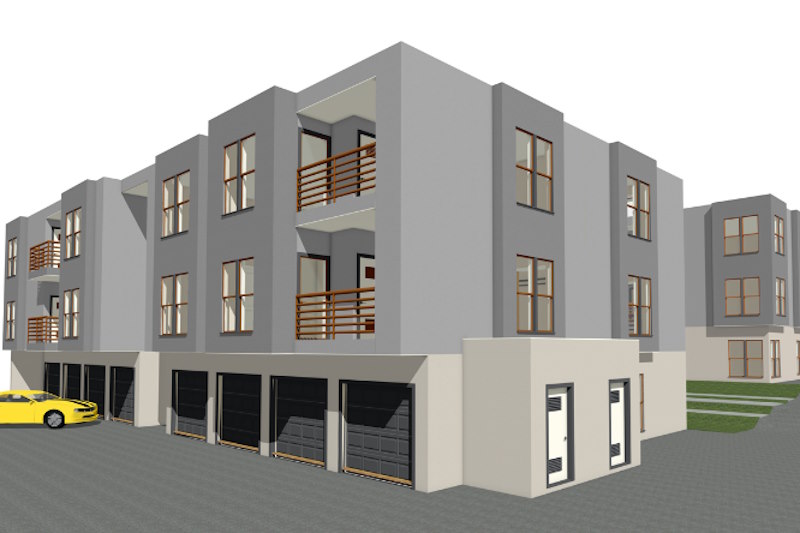 Floor plans listed with the city for “Building A” show two two-bedroom, two-bath apartments with patios, a caretaker unit, and six garages on the ground floor, and four two-bedroom, two-bath units with a balcony on the second and third floors. Floor plans for “Buildings B and C” show plans for one two-bedroom, two-bath unit, one one-bedroom, one-and-a-half bath unit, and eight garages on the ground floor. The second and third floors will consist of two two-bedroom, two-bath units and two one-bedroom, one-and-a-half-bath units on each floor.
